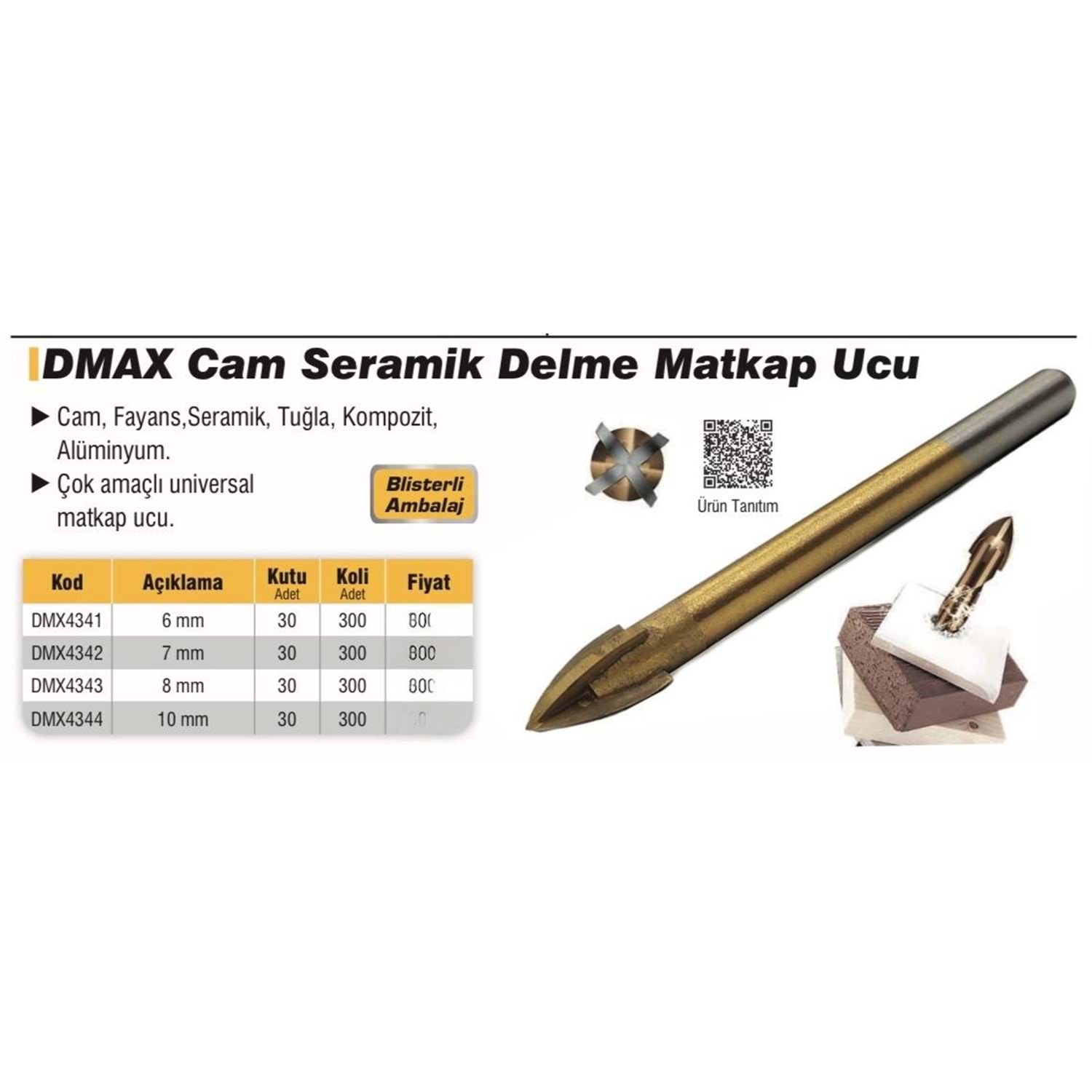 DMAX MATKAP UCU CAM SERAMİK DELME 8MM